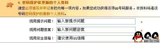 第五步:输入密码保护预更新的个人资料,包括现密码保护提示问题、现密码保护提示问题答案、现安全信箱地址。