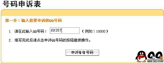 第一步:输入QQ号码,然后点击“申诉QQ号码”。