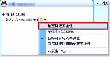 10.随着互联网的飞速发展,一些钓鱼网站和恶意网站也屡见不鲜,严重危害用户的个人信息和计算机安全。在好友发来不明链接时,您可以点击该链接右边的聪明标记并从下拉菜单中选择“检查链接安全性”菜单项,此时QQ会在浏览器中打开QQ安全中心的“检查链接安全性”页面,并显示该链接的安全性。