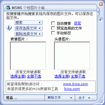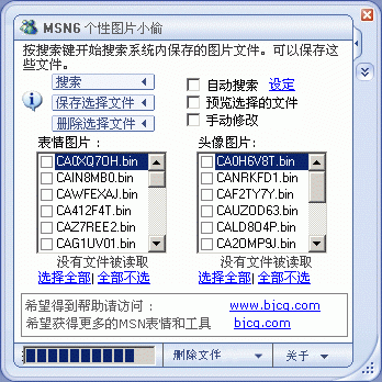 2 点击“搜索”按钮后,工具开始自动搜索硬盘里面保存的msn的头像和表情图片,如图2