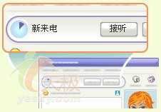 当有好友呼叫您时,如果您正打开聊天窗口与对方发送信息,窗口上方的对话工具条就会显示“新来电”。