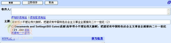把文件名复制到主题栏,点“添加附件”,选择好该文件。效果如下图: