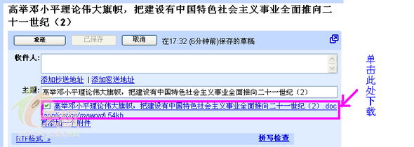 单击上图红线框处,在弹出的对话框中选保存,就可以把文件保存到任何一台电脑上,进行浏览和修改。如果要把修改好的文件再传到草稿箱中,再重复前面的操作就行了。