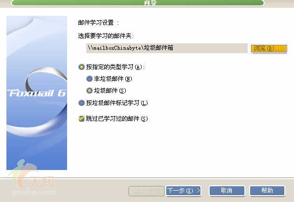 之后向导会让你选择被学习的邮箱。小编这里选择工作邮箱帐户下的垃圾邮箱。