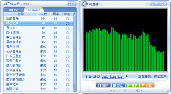 您可以一边浏览网页冲浪,以便收听QQ电台精彩节目。