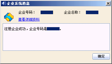 您申请成功后,将收到系统消息,提示您所申请企业的企业号码,如图