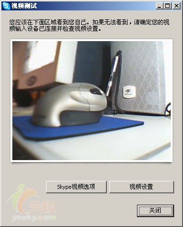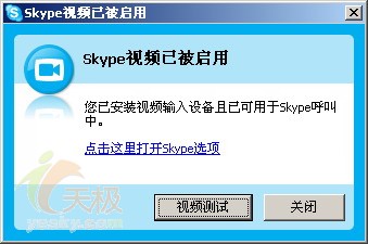 如果你的电脑装有摄像头的话,安装Skype2.0版后第一次运行时,会弹出“Skype视频已被启用”窗口(如图1所示),我们可以点击“视频测试”按钮,来调整自己的视频,令其达到最佳效果(如图2所示)。