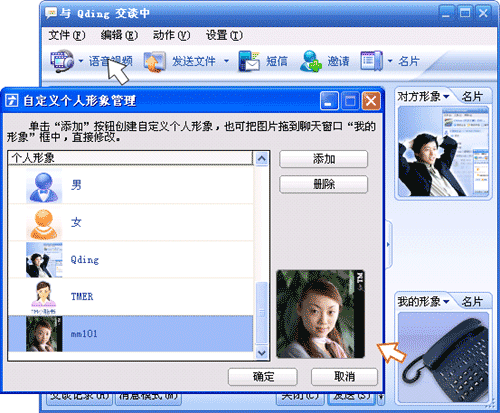 设定个人形象以后,在您每次非隐身上线后,在TM的消息框中,你的朋友都将可以看到你的照片,当在联系人列表中点击您的名字时,也将显示您的形象照片。