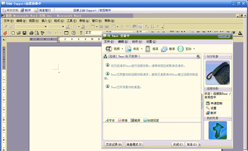 远程控制的窗口如图所示,在远程协助窗口中,发起方的桌面状态完全被对方可见。