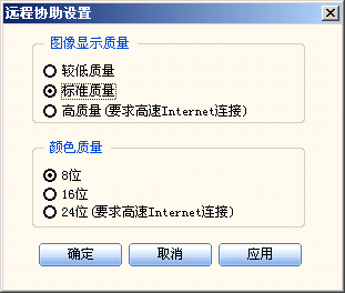 在远程协助中,点击 ,可以对远程协助的图像及色彩状况进行设置。