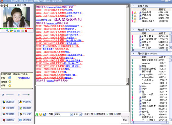 在圣诞节平安夜,笔者有幸也参加了一次聊天室的party。结果居然见证了人数直线飚升突破千人的盛况。玩家们确实组织了一次比较成功的视频party,看得出许多玩家都是有备而来的。大家在聊天室轮番视频表演,还有原创歌手来捧场,甚至钢琴演奏也能从视频里一览无余。可能由于人数过于集中火爆,聊天室曾有几次中断,但并没有影响玩家的热情,很快又重新进入。这种方式的活动非常有潜力。在各方面都完善后,相信圈圈聊天室会给大家更多惊喜。