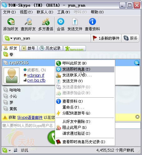 没有好友的话使用Skype也就没有意义了。因此首先要做的就是添加自己的好友。