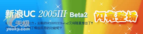 新浪UC去年9月底发布2005III Beta1增加超清晰大视频功能以来(《新浪UC2005IIIBeta1发布 也玩超级视频》),一直没有新改动。昨天其最新版2005III Beta2终于发布,主要更新如下: