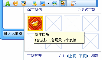 精美的QQ主题包,将相同主题的皮肤、表情、场景打包在一起,只要轻轻点击选中的主题包,便可将皮肤、表情、场景全换上。
