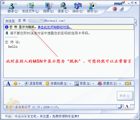 好了,看会了吗?那就现在动起鼠标,赶快感受一下在MSN中隐身聊天的“快乐”吧!