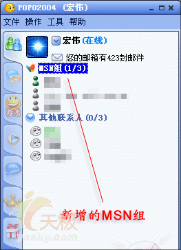 3. 点击确定以后,MSN插件即在POPO中生效了,此时您在MSN上的好友也会全部显示在了POPO的界面中了。如图3所示