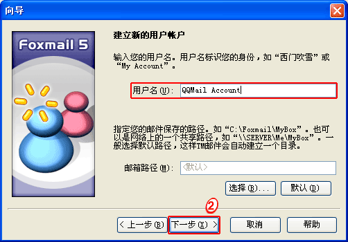 1. 打开Foxmail,点击“帐户”菜单中的“新建”,进入 Foxmail 用户向导,点击“下一步”。