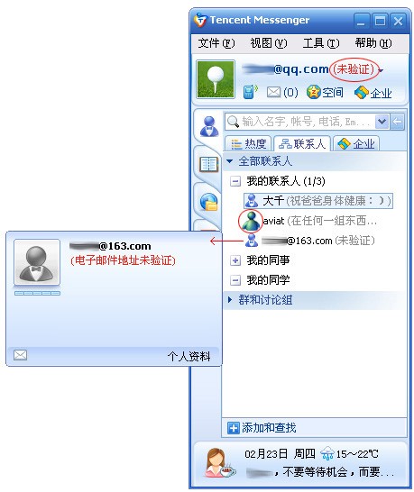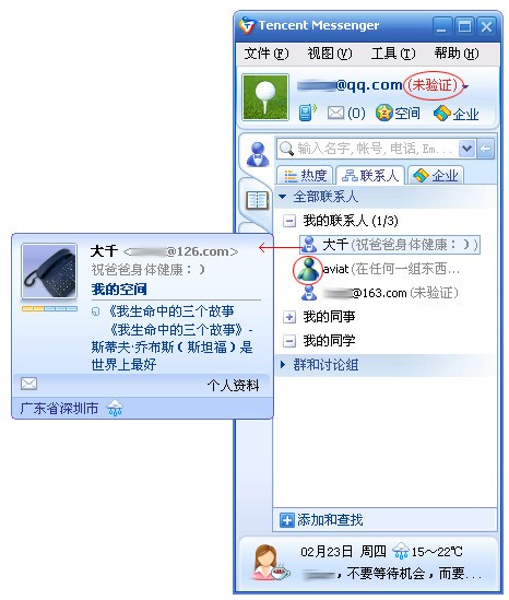 从这一点来说,不仅仅与MSN有异曲同工之处,还让用户的体验更贴切、更私人化了。如此一来,用户既可以使用Email作为发信的标记,也可以通过腾讯TM来沟通。