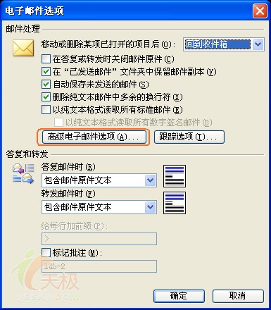 3.在“电子邮件选项”对话框中单击“高级电子邮件选项”按钮,如图4所示。