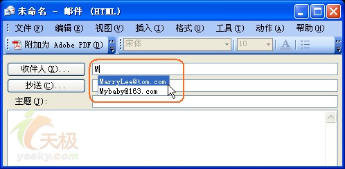 在使用Outlook 2003撰写新邮件时,如果我们在收件人地址栏或抄送栏中键入邮件地址,Outlook会自动列出相近的名字或邮件地址,这一功能称为姓名提示(或称为自动完成)。可是有些时候我们并不希望Outlook自动弹出姓名或地址列表(例如多人共用一台计算机时),有没有办法将这一功能关闭呢?
