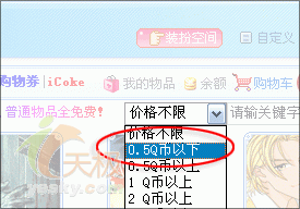 2. 随后,点击QZone里面的“装扮空间”按钮,并在弹出的页面中将皮肤价格选择为“0.5Q币以下”,点击“查找”按钮