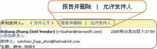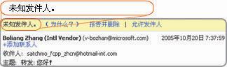 您收到了系统不识别的发件人的电子邮件。一个单击操作就可以将其删除并将发件人报告为LJ邮件发件人。如果此邮件确实来自您的朋友,您也可以通过单击让 Windows Live Mail Beta 一直允许来自此地址的电子邮件。