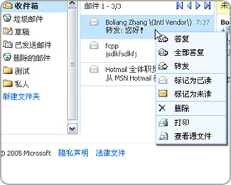 释放右键单击的力量!在邮件上右键单击可以回复、删除或做大多数操作。对文件夹也同样适用。
