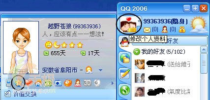 第一步:鼠标指针指向QQ主面板上的图像,在弹出的悬浮窗中点击“QQ空间”图标进入空间(图1)。