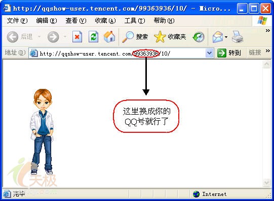 大家稍微留意一下可能会发现,QQ秀其实也就是一幅图片,如果我们能找到图片的地址就好办了。经过一番努力,笔者发现QQ秀的真实地址为“http://qqshow-user.tencent.com/你的QQ号/10/”(图6)。同样在论坛的签名中设置一下就可实现论坛签名显示QQ秀了。