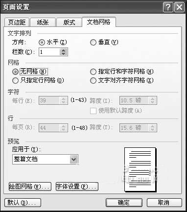 另外一种方法是点击“文件”菜单下的“页面设置”项。在“文档网格”标签页中的“网格”一栏,勾选“无网格”项(如图)。这样能很大程度上缓解行距不等的情况,然后再进行公式大小的微调,就能取得很好的显示效果。