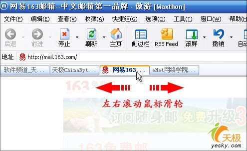 使用时,只要把鼠标悬停到网页标签上,然后再滚动鼠标的滑轮,这时窗口便会在当前的标签中来回切换了。如图2所示