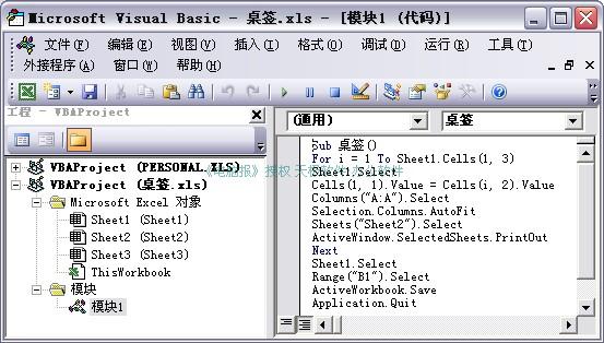 Cells(1, 1).Value = Cells(i, 2).Value '依次将B列的桌签字符调入A1单元格中。
