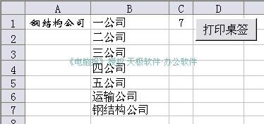 以后需要打印桌签时,只要将相应的字符输入到B列下面的单元格中,然后按下“打印桌签”按钮,就一切OK了。