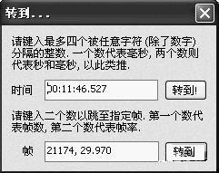 定点播放:要想跳过影片的前部,从指定位置开始播放,可以单击菜单“播放/转到”,打开“转到”窗口,在此可以通过时间或帧两种方式来确定影片的播放位置(图2),最后单击“转到”按钮,即可实现从指定位置播放。