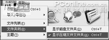 其实只要单击菜单“选项”,选择“文件夹树”下的“显示压缩文件文件夹”(如图),即可让所有子文件夹中的文件全部列表显示在同一窗口中。这样我们就不必再逐一打开各子文件夹了。