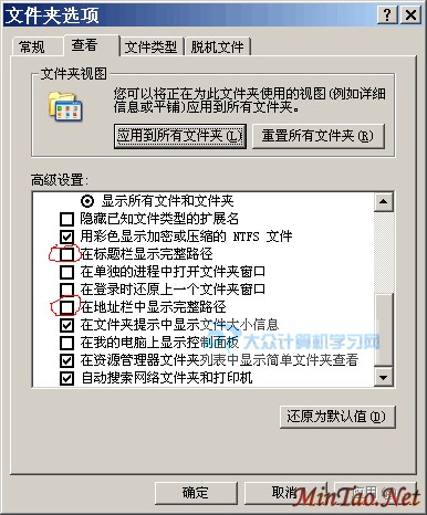 上图中,切换到“查看”选项卡,之后在“高级设置”列表中,找到“在地址栏中显示完整路径”,在其前面打上一个√,之后确定退出即可!
