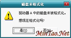 一打开其中的一张软盘,就出现如下图的提示“驱动器A中的磁盘未被格式化”;