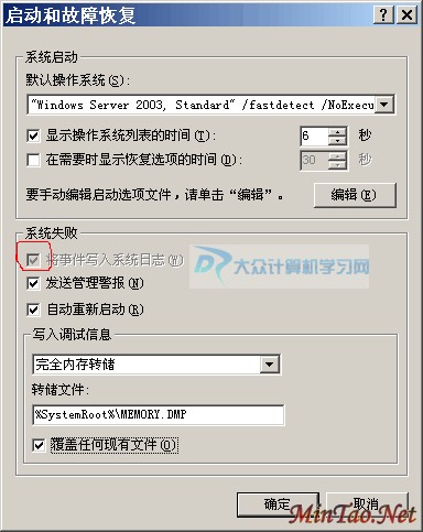 上图中,切换到“高级”选项卡,之后在“启动和故障恢复”那里,点击“设置”按钮,弹出如下图的对话框!