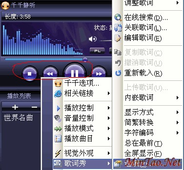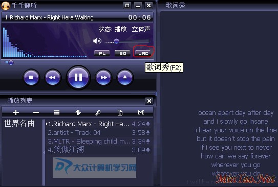 二:使用技巧———在线显示歌词