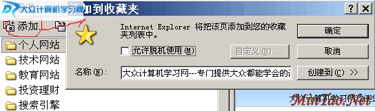 只需要点击“添加”按钮,弹出如下图的对话框,按“确定”按钮,即可将正在浏览的网站的网址添加到收藏夹!