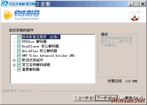超级兔子快乐影音是一个以MPC为基础的影音播放器,她集成了大多数影片的解码器,可以播放VCD、DVD、MPG、MP3、MP4、VOB、RM、MOV等等大多数影片和音乐,支持98/Me/2000/XP,具有非常好的兼容性,这一切都是完全免费的。