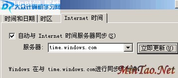 “自动与 Internet 时间服务器同步(S)”未勾上,按上图,先勾上,再点击应用,然后再点“立即更新(U)”;或者如果原来是选中“自动与internet时间服务器同步”请先勾掉,再钩上确定退出,然后再进去更新。