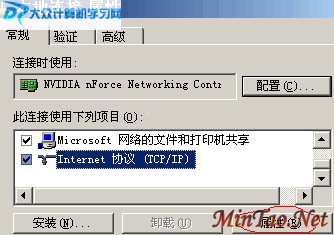 弹出如下图的“本地链接”对话框;选择“常规”选项卡,并找到“Internet 协议(TCP/IP)”并选中,之后点击“属性”按钮;