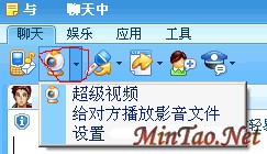 无论想和谁视频聊天,首先先打开聊天窗口,办法是直接双击好友列表名单,弹出如下的聊天窗口,之后,点击下图中被红线圈住的按钮右边的小黑色三角形,弹出菜单,一般选择“超级视频”即可,接下来啥都不用做,等对方确认之后即可看到头像了!