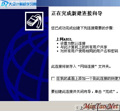 上图中,如果想偷懒,可以选择“在我的桌面上添加一个此连接的快捷方式”,点下一步,弹出如下图的对话框!
