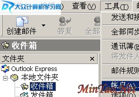 以中文版Outlook Express 为例,请按以下步骤,手动配置您的客户端: 不同的邮件服务提供商,所提供的邮件接收和发送地址不一样,得根据需要自己设置,下面以126.com邮件服务提供商为例子进行说明! 1、打开Outlook Express 后,单击窗口中的“工具”菜单,选择“帐户”,如下图;
