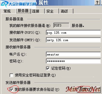 7、单击“完成”按钮保存你的设置; 8、设置SMTP服务器身份验证:在“邮件”标签中,双击刚才添加的帐号,弹出此帐号的属性框; 9、请点击“服务器”标签,然后在“发送邮件服务器”处,选中“我的服务器要求身份验证”选项,并点击右边“设置”标签,选中“使用与接收邮件服务器相同的设置”。