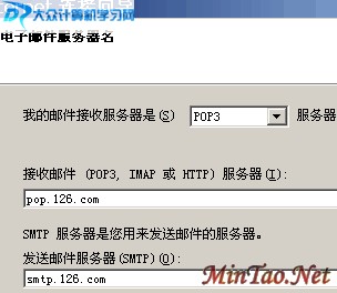 3、弹出的对话框中,根据提示,输入你的“显示名”, 然后点击“下一步”; 4、输入你的电子邮件地址,点击“下一步”; 5、输入你邮箱的POP和SMTP服务器地址: pop: pop.126.com smtp:smtp.126.com