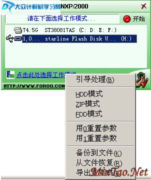 借助USBoot这个工具(没有工具就到网上下载一个),制作过程非常简单,几分钟搞定。 有三种启动模式: HDD:启动后显示C:(将其视作HardDisk) FDD:启动后显示A:(将其视作FloppyDisk) ZIP:没try过 一般,2002年后生产的主板很有可能支持U盘启动,步骤如下: