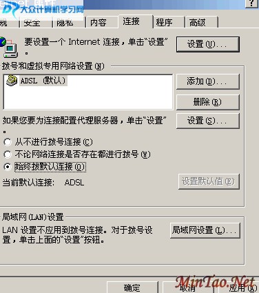 当开机的时候,您不想进行ADSL连接,而是想直接打开浏览器就能自动进行拨号而打开网页的时候,这招就很管用了;